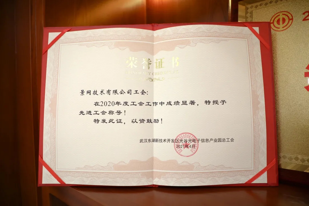 >> 景網(wǎng)工會榮獲東湖高新區(qū)光電辦先進(jìn)工會榮譽稱號