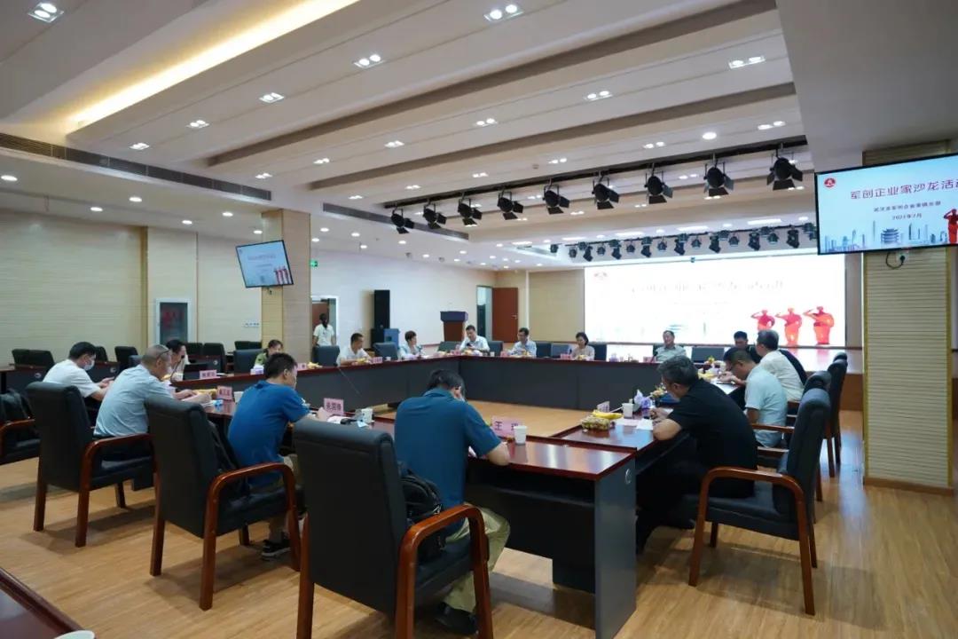 化信息技術(shù)公司、武漢?;厶匮b科技股份有限公司、武漢維普科技有限公司、武漢亞為電子科技有限公司、武漢仕代環(huán)境科技有限公司、湖北恒普科技有限公司、武漢依迅北斗時(shí)空技術(shù)股份有限公司、景網(wǎng)技術(shù)有限公司、湖北將軍紅釀酒有限公司等軍創(chuàng)企業(yè)家先后分別進(jìn)行自我介紹,展示自己的企業(yè)文化,抒發(fā)軍旅情懷,分享創(chuàng)業(yè)經(jīng)歷。