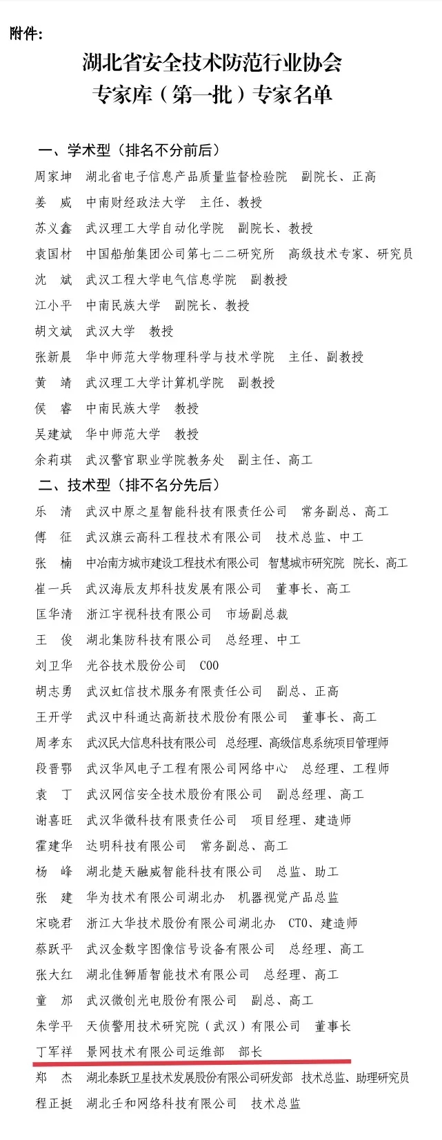景網(wǎng)丁軍祥當(dāng)選為湖北省安防協(xié)會(huì)專家?guī)焓着夹g(shù)專家