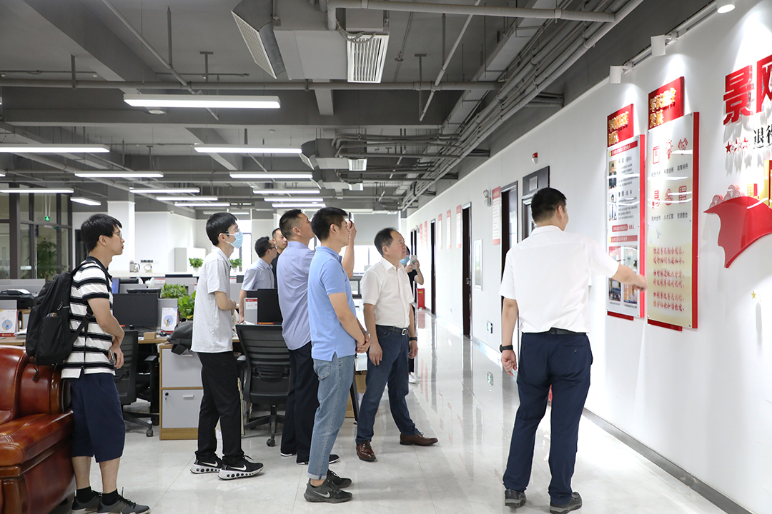 宋凱帶領(lǐng)陳水良一行參觀了景網(wǎng)辦公大樓,智慧城市信息系統(tǒng)運(yùn)維業(yè)務(wù)展示區(qū),軍創(chuàng)企業(yè)基因展示區(qū),黨群活動(dòng)中心、榮譽(yù)室、職工之家、文體活動(dòng)區(qū)、職工食堂等區(qū)域。同時(shí),宋凱向大家簡要介紹了景網(wǎng)核心技術(shù)、主要服務(wù)產(chǎn)品、企業(yè)經(jīng)營模式以及國防信息化業(yè)務(wù)發(fā)展情況。參觀一行人對(duì)景網(wǎng)的發(fā)展速度與成長能力表示肯定。