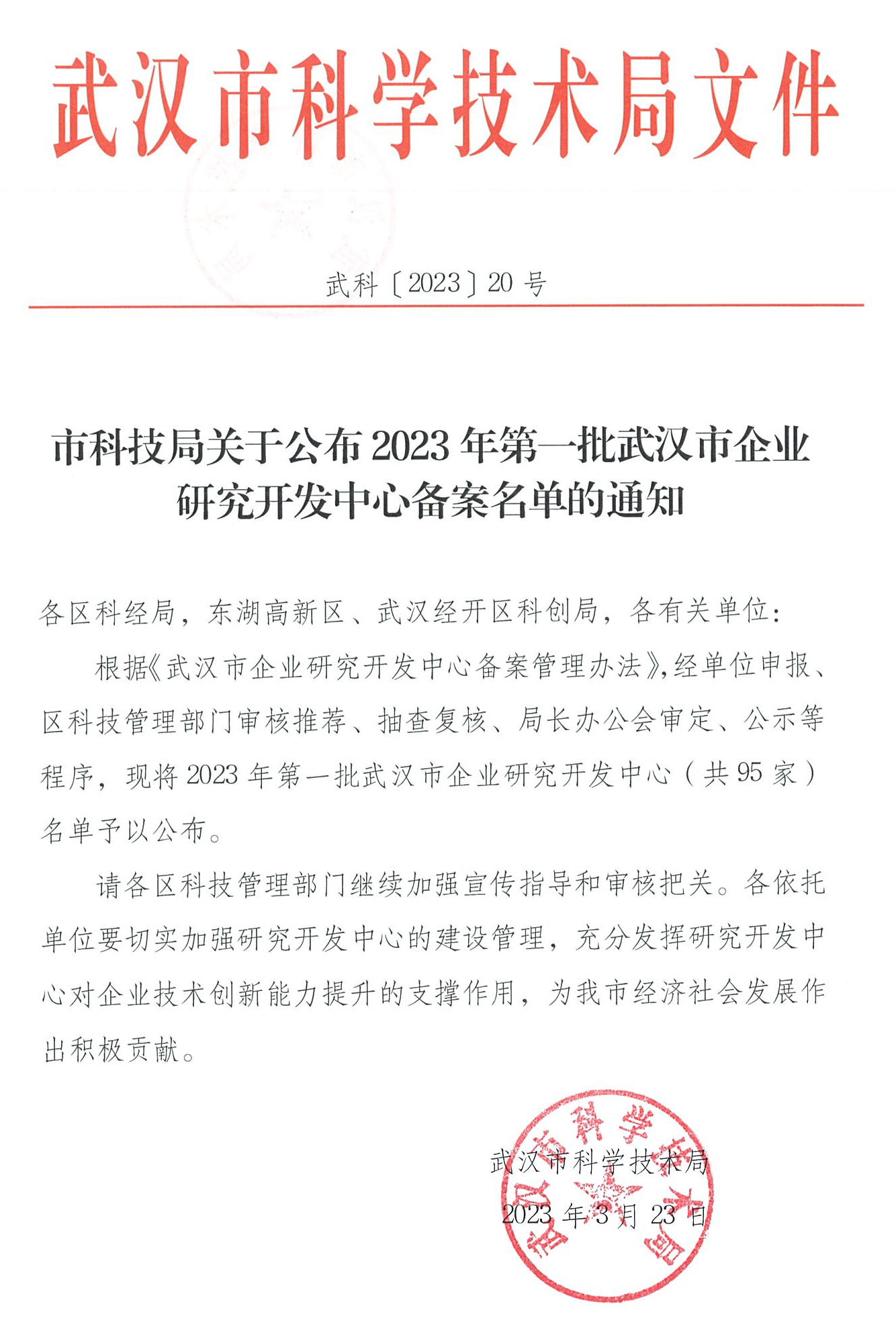 根據(jù)《武漢市企業(yè)研究開發(fā)中心備案管理辦法》,經(jīng)單位申報、區(qū)科技管理部門審核推薦、抽查復(fù)核、局長辦公會審定、公示等程序,3月23日,武漢市科技局公布了2023年第一批武漢市企業(yè)研究開發(fā)中心備案名單,全市95家單位獲批,景網(wǎng)公司研究開發(fā)中心榮幸在列。